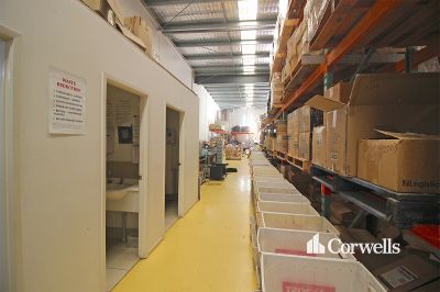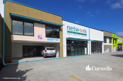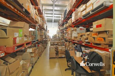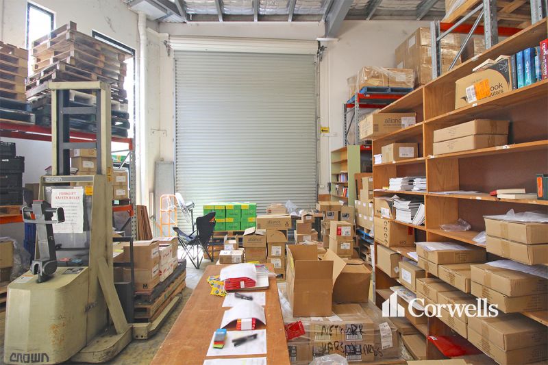 - Two large roller doors serving rear loading area
